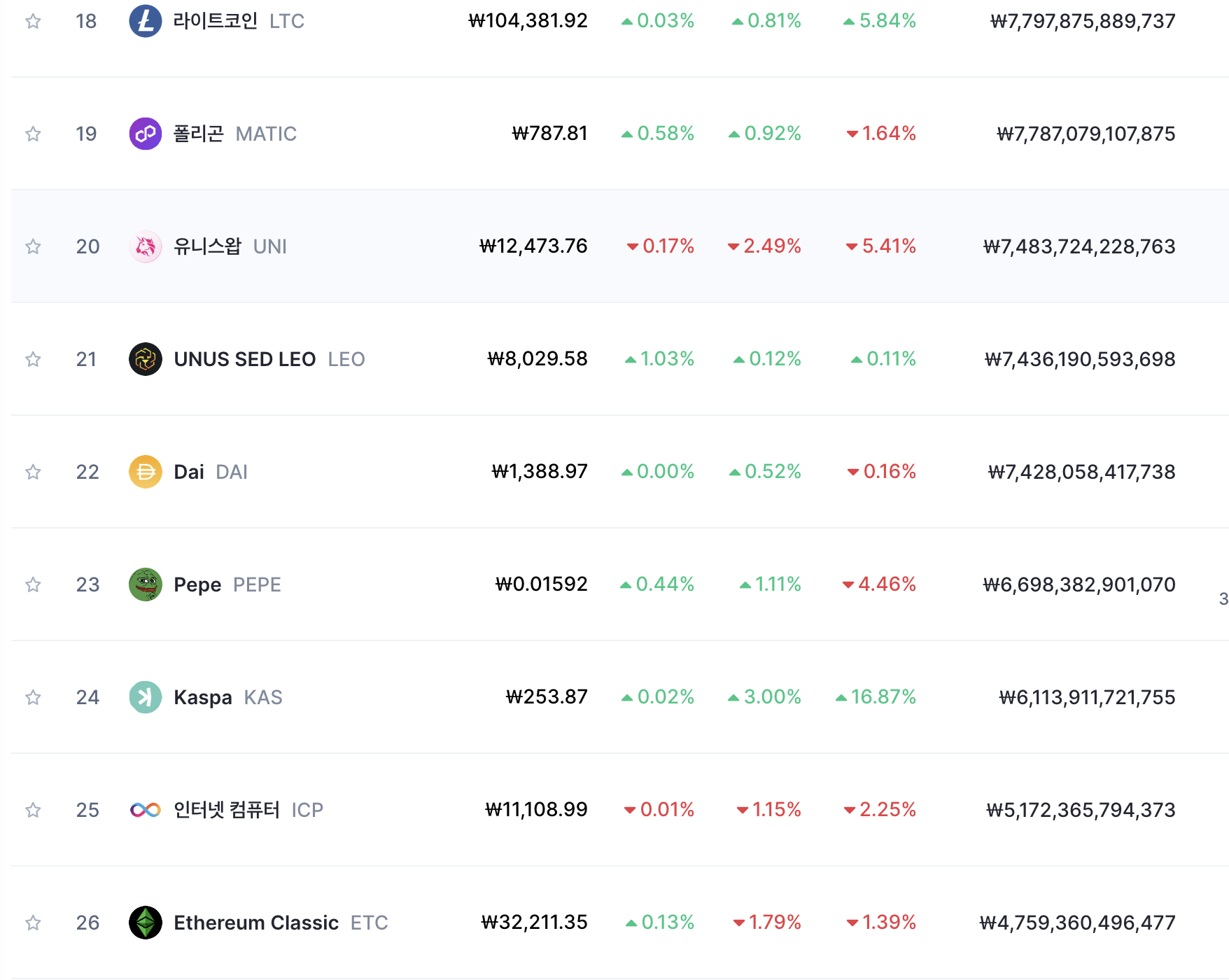 이더리움클래식 따고 시총 6조에 주차했군요.