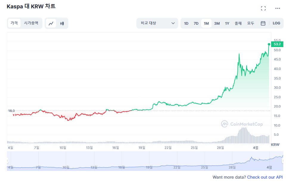 약 53원 정도 하는 카스파코인이 16536원 이상 가야 넘길수 있다는 것인데요.